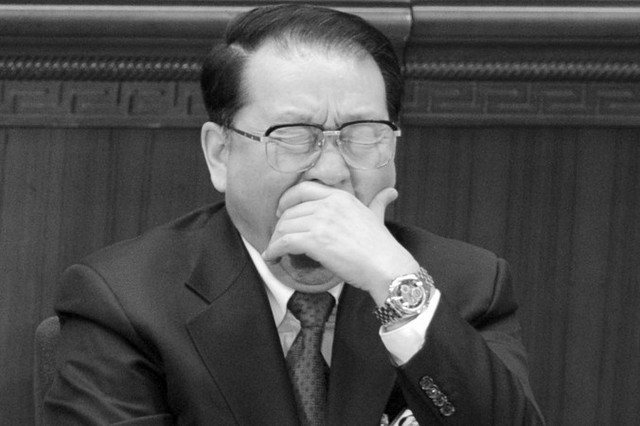 Ли Чанчунь, член Постоянного комитета Политбюро компартии Китая, зевает на сессии открытия Всекитайского собрания народных представителей в Великом народном зале Пекина, 5 марта 2012 года. Недавняя серия новостей в китайских государственных СМИ о Ли и его семье подкрепляют слухи о том, что он станет мишенью антикоррупционного расследования. Фото: Liu Jin/AFP/Getty Images