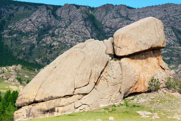 Ця скеля надзвичайна — довжиною близько чверті милі, вона має форму гігантської черепахи, яка піднімає голову до річки і не рухається вже тисячу років. На її вигнутій спині є природні борозенки, які утворюють візерунок Восьми Триграм. На вершині скелі звивається кам'яна змія, а плями моху створюють візерунок, схожий на панцир черепахи. Вона здається не холодним каменем, а скоріше священним предметом, навмисно розміщеним Небом і Землею.