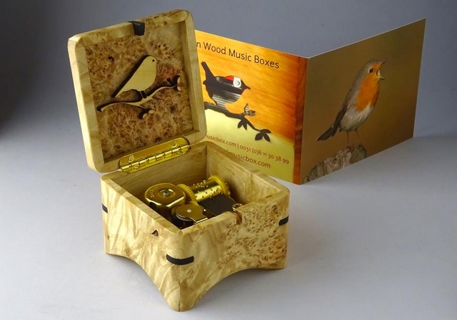 На сайті Robin Wood Music Boxes можна вибрати модель виробу, породу дерева, мелодію та зображення, яке буде вигравірувано на скриньці. Без сумніву, багатьом буде приємно отримати в подарунок таку чарівну річ.