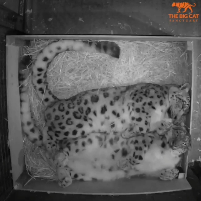 Щоночі пара снігових барсів, які живуть у заповіднику "Велика кішка" в графстві Кент, Англія, демонструє глибоку прихильність. Протягом ночі вони сплять у найкумедніших і наймиліших позах у своєму лігві.