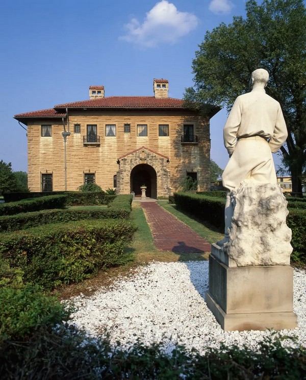 Поблизу міста Понка-Сіті, штат Оклахома, Е.В. Марланд створив свій власний замок у вигляді тосканської вілли. Побудований з рустованих вапнякових блоків, видобутих на місці, «палац на прерії» з 55 кімнатами увінчаний дахом з теракотової черепиці в стилі італійського ренесансу. Фасад прикрашають балкони, що спираються на масивні консолі. (Kit Leong/Shutterstock)