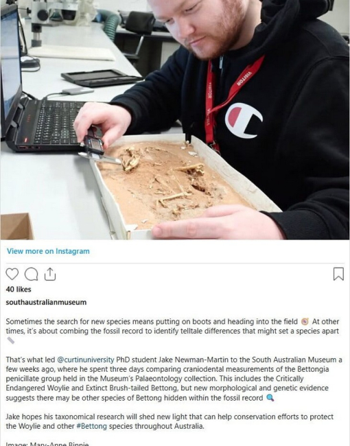 Ми також ідентифікували третій вид, що вимер, — Bettongia haoucharae, або «маленький беттонг». Його частково скам'янілі останки були виявлені в пустелі Вікторія та на рівнині Налларбор, що свідчить про його гарну адаптацію до посушливих умов.
