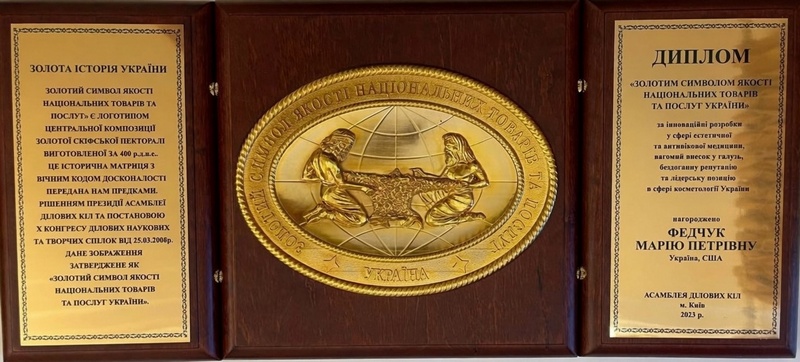 Наприкінці серпня 2023 року професійна спільнота України відзначила вагому подію у галузі приватної медицини. Відома лікарка-дерматолог та інноваторка Марія Федчук стала лауреатом почесної відзнаки «Золотий символ якості товарів та послуг України». Це визнання від експертної ради програми «Лідери XXI століття» зафіксувало статус її авторських методик та діяльності компанії «М.Д.А. Україна» як еталонних для ринку.
