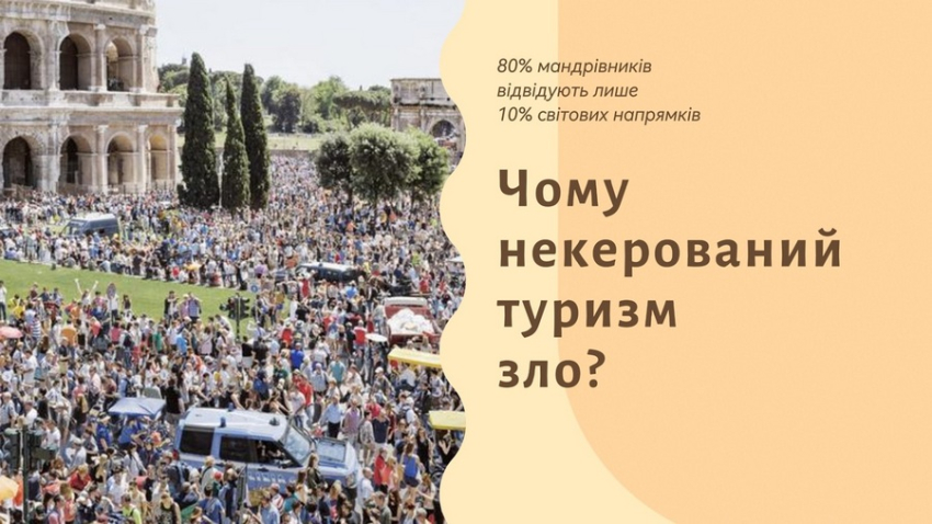 Дослідження французького стартапу Murmuration, який займається вимірюванням впливу туризму на навколишнє середовище шляхом вивчення фотографій із супутників, показали, що 80% мандрівників відвідують лише 10% світових напрямків. Тобто більшість людей їздить до кількох найпопулярніших точок на планеті.
