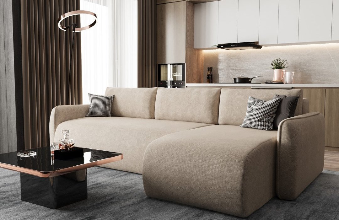 Також потрібно враховувати каркас (оптимально – міцний, дерев'яний) та наповнювач (краще віддавати перевагу якісним ортопедичним пружинам, щільному пінополіуретану). Наприклад, для невеликої вітальні чудово підійде кутовий диван Верона, який можна замовити на сайті інтернет-магазину Soft Touch https://softtouch.com.ua/. Модель має розміри 245 на 160 см і досить просторе спальне місце – 150 на 200 см.