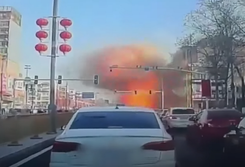 Момент вибуху в ресторані на півночі Китаю потрапив на відеореєстратор автомобіля, що проїжджав поряд.