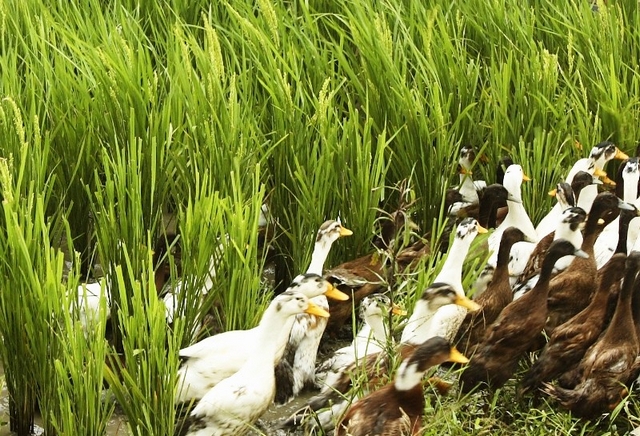 Фермери багатьох країн починають повертатися до древнього китайського методу вирощування рису, використовуючи качок замість пестицидів. Качки поїдають усіх шкідливих комах, бур'яни та навіть їхнє насіння, і анітрохи не шкодять посадкам рису.