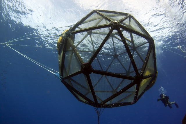 Команда біологів із Гаваїв спроектувала абсолютно новий тип рибних ферм, які не створюватимуть проблем жителям прибережних районів. Це будуть плаваючі ферми у вигляді величезних куль, які вільно дрейфуватимуть водами океану.