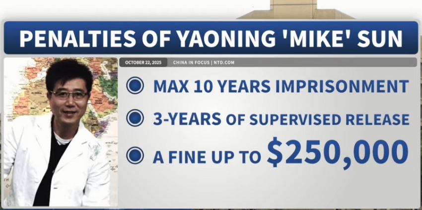 Сунь працював агентом з 2022-го по 24-ий рік. Тепер йому загрожує до 10 років ув'язнення та штраф до двохсот п'ятдесяти тисяч доларів. Його також можуть депортувати.