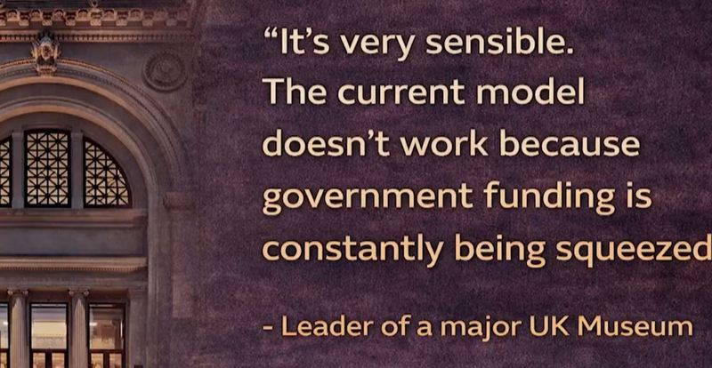 Минулого місяця уряд Великої Британії заявив, що співпрацюватиме з музейним сектором з метою вивчення потенційних переваг запровадження плати за відвідування національних музеїв для іноземних туристів, зокрема того, як це може підтримати сектор мистецтва. Як було зазначено, до кінця року буде представлена оновлена інформація за підсумками консультацій.