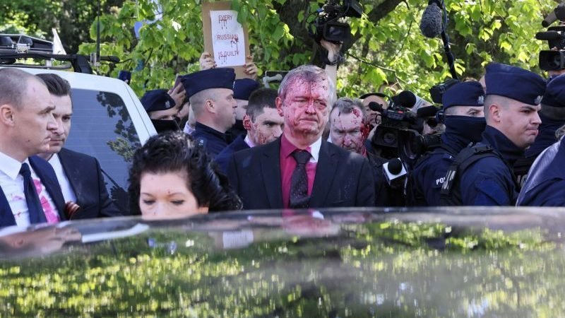 Росія відреагувала після того, як її посла у Польщі Сергія Андрєєва облили червоною фарбою проукраїнські демонстранти, коли він намагався покласти квіти на цвинтарі радянських солдатів у Варшаві.