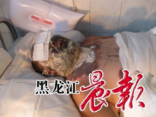 После попытки самосожжения у мужчины сильно обгорело лицо, но опасности для жизни нет. Фото с aboluowang.com