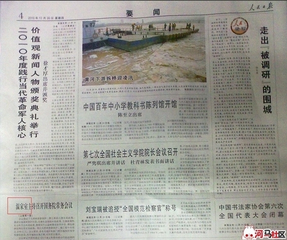 В предновогоднем номере одной из крупнейших газет компартии КНР «Жэньмин Жибао» в заголовке статьи в имени премьера Вэнь Цзябао последний иероглиф написали неправильно. В результате были уволены или сняты с должностей около 17 человек, отвечающих за выпуск.