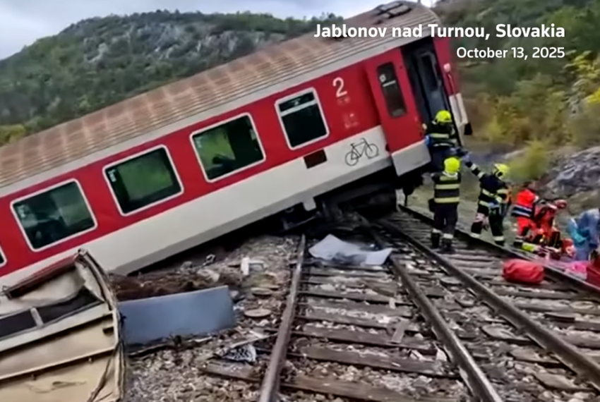 Словацкие железные дороги сообщили, что два поезда столкнулись в месте, где пути пересекаются и превращаются в одну линию, и что причина аварии расследуется.
