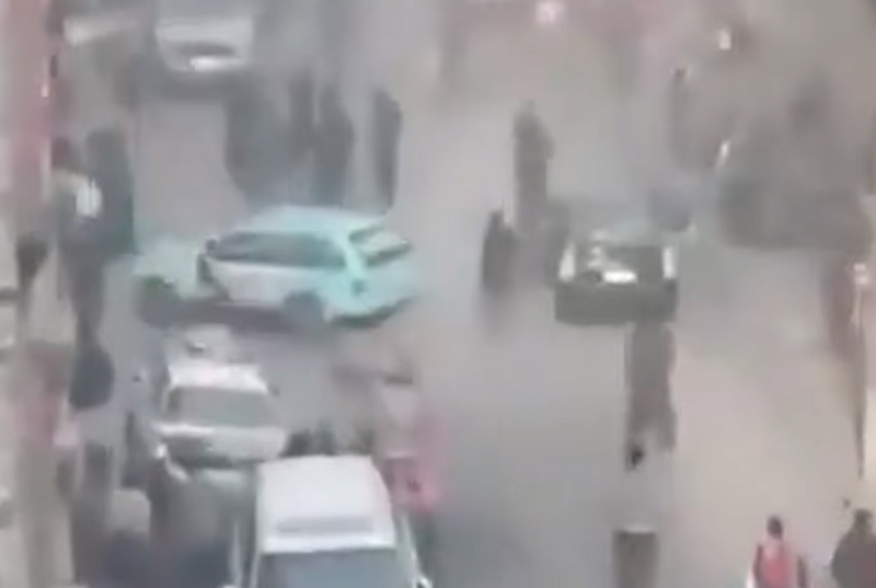 В видео, опубликованных в социальных сетях, видно, как обломки разбросаны по улице, а из большой дыры, пробитой в фасаде здания ресторана, валит дым.