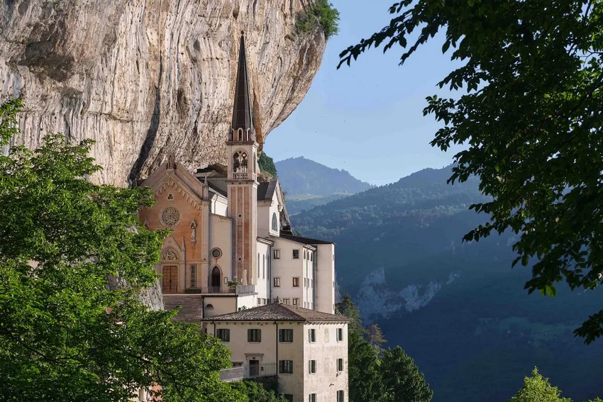 Святилище с видом на реку Адидже с величественной высоты 775 метров — это место возвышенной красоты, которое привлекало путешественников к часовне еще в 13 веке, ведь в ней почитали Мадонну из Монте Бальдо. Первая церковь на скале была основана в 1480 году, а ее строительство было завершено в 1522 году — когда, по преданию, произошло чудо.