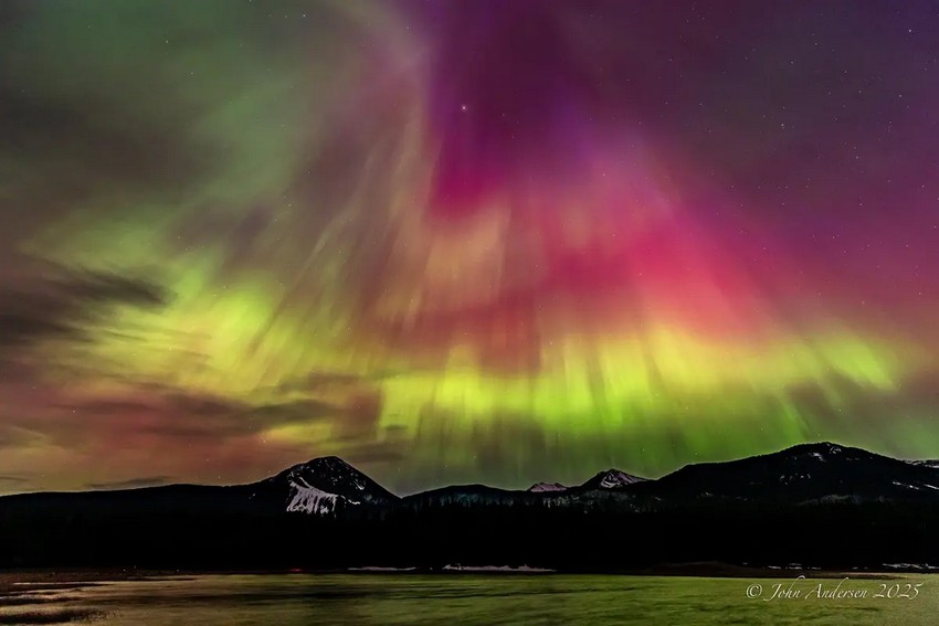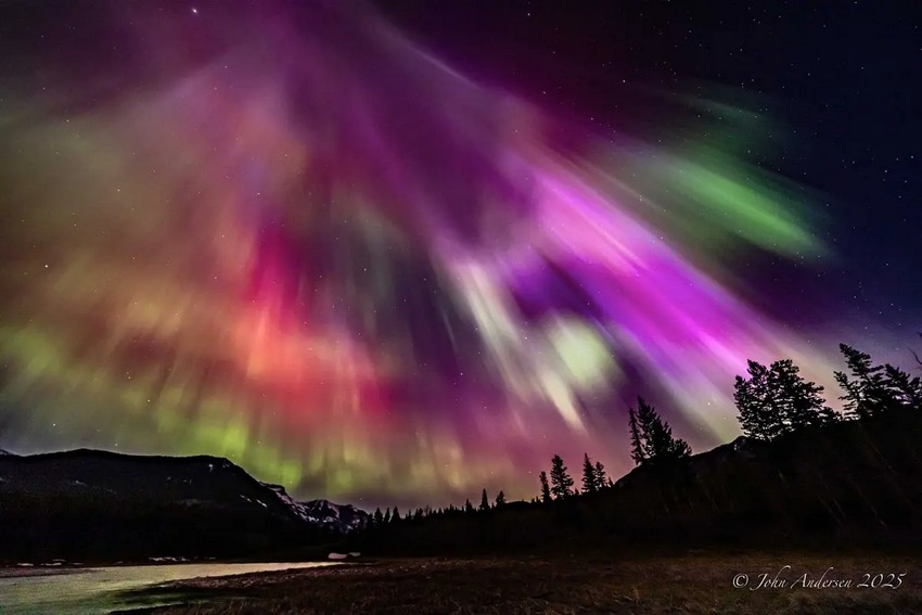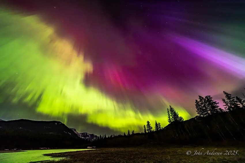 68-летний геолог и астрофотограф Джон Андерсен из Калгари зафиксировал необычно яркие цвета полярного сияния. По его мнению, это может свидетельствовать о росте геомагнитной активности и возможном смещении магнитных полюсов Земли, который, по научным оценкам, «опоздал на миллион лет».