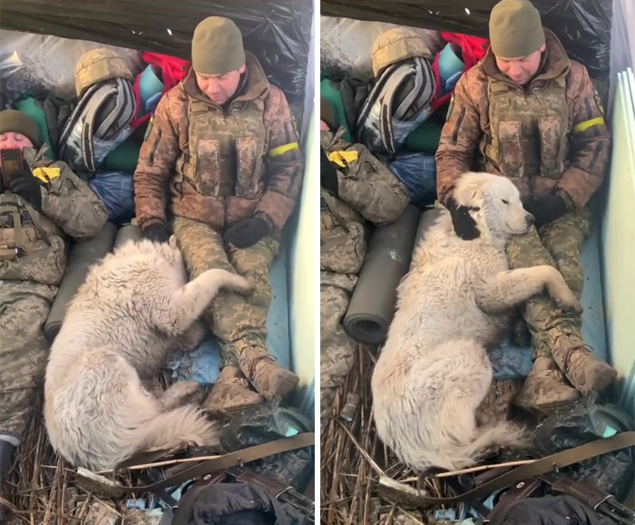 Люди плакали не только по близким, но и по своим животным. Они тоже погибли, потерялись или их пришлось оставить при эвакуации. Однако у нас есть доказательства того, что животные, которые выжили, возможно, нашли новый дом и о них позаботились солдаты, которые пошли защищать нашу Украину.