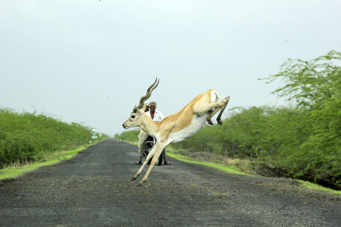Впечатляющий эпизод был снят фотографом Пратиком Пателем, который заметил, что стадо антилоп стремительно пересекает дорогу в Блэкбак — национальном парке, расположенном в Велавадаре в округе Бхавнагар штата Гуджарат, Индия.