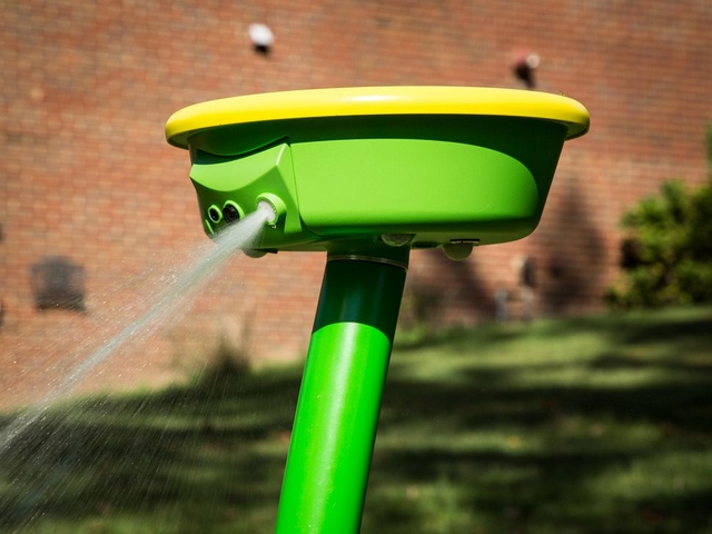 Робот работает на солнечной энергии и функционирует даже в пасмурные дни. Его смарт-камера поворачивается на 360 градусов и записывает изображения и видео. Когда камера обнаруживает животное или вредителя, она направляет спрей воды непосредственно на незваного гостя.