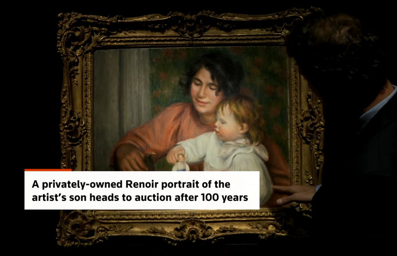Редкая картина французского импрессиониста Пьера-Огюста Ренуара, на которой изображены его сын и няня, была продана за 1,45 миллиона евро на аукционе, проведенном Drouot во вторник в Париже.