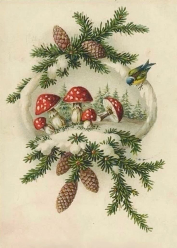 Так что мухомор на рождественской открытке — это больше сказочный персонаж, он помогает обрести веру в чудо и дарит надежду, что новый год принесёт счастье, удачу и немного волшебства в каждый дом.