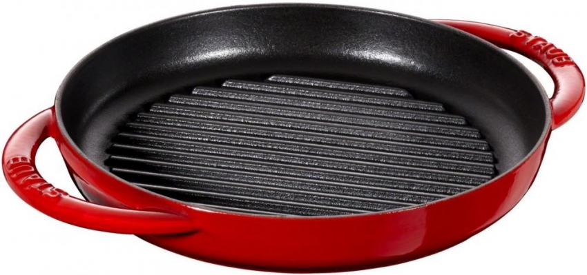 Основная её черта − это ребристое дно. Благодаря этому жир, который выделяется из продуктов при жарке, стекает в желобки между рёбрами, не впитываясь обратно в блюдо. Последнее в итоге получается далеко не таким калорийным, как то, которое было приготовлено на обычной сковороде. Сковорода-гриль идеально подходит для приготовления мяса, рыбы, овощей и морепродуктов. Особенно вкусными на такой сковороде получаются стейки.