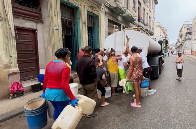 Жители кубинской столицы таскали ведра и выстраивались в очереди за водой из автоцистерн, поскольку из-за нехватки топлива и нестабильности в электросети тысячи водопроводных кранов остались без воды.
