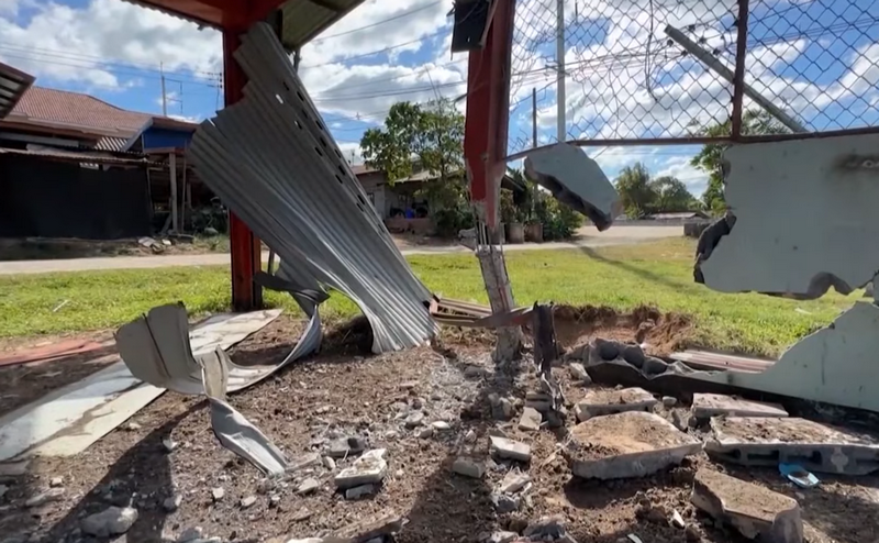 Армия сообщила, что два мирных жителя получили серьезные ранения после того, как ракета упала в провинции Сисакет.