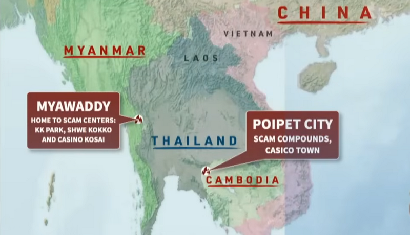 Одним из крупнейших центров мошенничества стал KK Park в Мьянме, недавно разрушенный во время совместной операции местных сил. Однако американские чиновники заявляют, что у одного из крупных акционеров этого центра тесные связи с Единым фронтом КПК — организацией, продвигающей политические цели Китая на международном уровне.