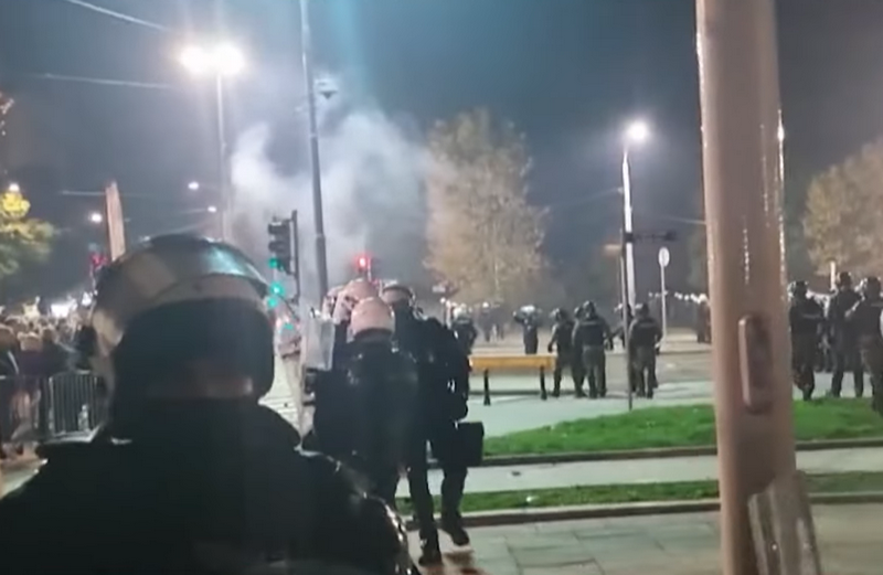 В воскресенье вечером, незадолго до годовщины трагического обрушения крыши, которое вызвало молодежное движение против коррупции и неэффективного управления, сотни антиправительственных демонстрантов столкнулись с сторонниками сербского президента Александра Вучича.