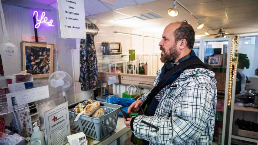 Человек покупает еду в Стокгольме, Швеция, 14 марта 2023 года. (JONATHAN NACKSTRAND/AFP via Getty Images)