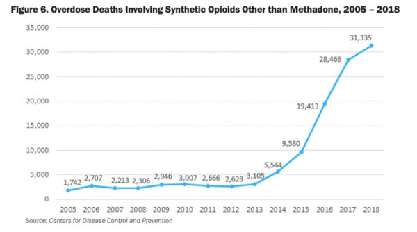 Согласно отчёта Управления по борьбе с наркотиками США (Drug Enforcement Administration, DEA) от 2 марта этого года, запрещённый фентанил является главной причиной продолжающегося опиоидного кризиса.