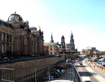 В центре Театральной площади конная статуя короля Иоганна, который славился любовью к науке и был известен как переводчик произведений Данте. Ближе к Эльбе расположена итальянская деревенька, потом идет мост короля Августа через реку. Со стороны южного его основания сооружена Придворная церковь – самый большой собор Саксонии (4800 кв. м). Это монументальное здание в стиле позднего барокко было воздвигнуто в 1755 году.