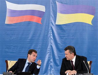 Президент России Дмитрий Медведев говорит с Президентом Украины Виктором Януковичем на украинско-русском Межрегиональном экономическом форуме в Донецке 18 октября 2011 года. Фото: Ekaterina Shtukina/Getty Images«К решению этого вопроса мы подошли очень близко, но еще не окончательно. Процесс продолжается. Он сложный. Но у сторон есть обоюдное желание решить эту задачу, а для этого требуется время», ― прокомментировал Президент ход переговорного процесса с Россией, сообщает «Интерфакс-Украина».