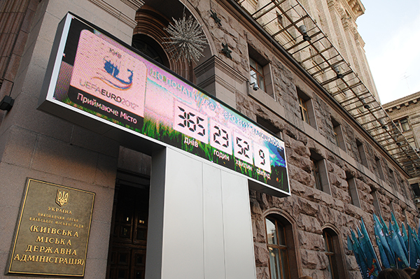 Огромное табло начало отсчет времени до начала Евро-2012