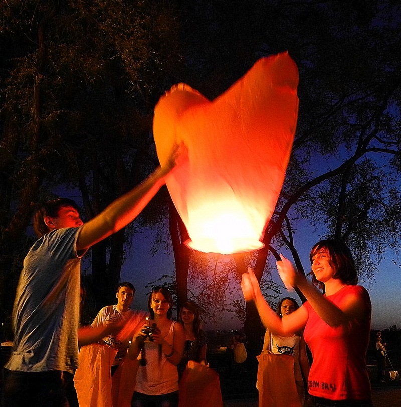 Захоплююче видовище спостерігали жителі Харкова — в районі злиття річок Лопань і Харків 29 квітня сотні небесних ліхтариків світилися над Лопанською стрілкою. Білі, червоні і кольорові легкі паперові сфери одна за одною спрямовувалися до зірок.