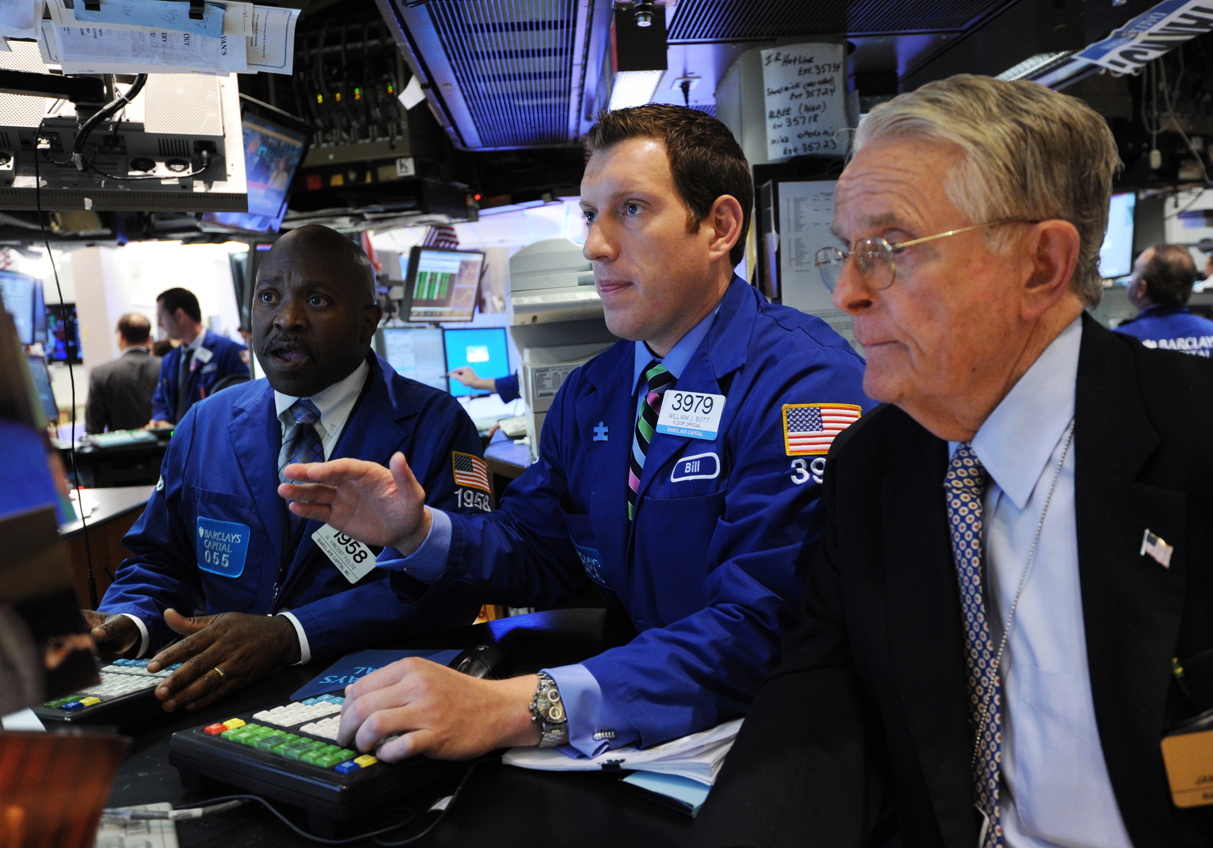Біржові маклери Нью-Йоркської фондової біржі спостерігають за фондовими індексами США 11 серпня 2011 року: чергове драматичне падіння індексу в четвер, і крайня нестабільність на ринках по всьому світу. Фото: Stan Honda/Getty Imagesо сценарію.Світовий ринок знову лихоманить. Зниження рейтингу США компанією Standard&Poor's викликало бурхливу реакцію на фондових, валютних і сировинних майданчиках всіх континентів планети.