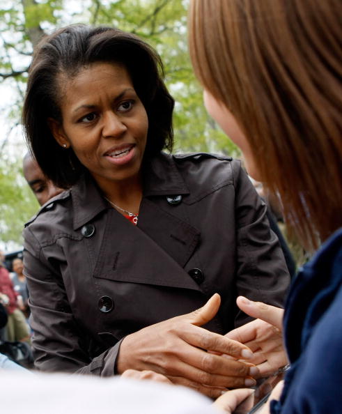 Мішель Обама потискає руку учасникам «Сімейного пікніка» в Гамільтоні в Парку відпочинку і розваг в Індіані. Фото: Mark Wilson/Getty ImagesДружина президента США Барака Обами Мішель Обама знялася в одному з епізодів комедійного серіалу «Парки і зони відпочинку», де зіграла роль самої себе.
